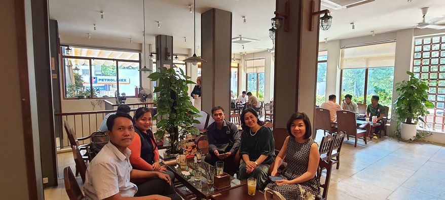 Sáng nay, An có lịch cà phê với BĐH CLB MABC: Mrs. Tú Anh, Mrs. Phương, Mr. Công
