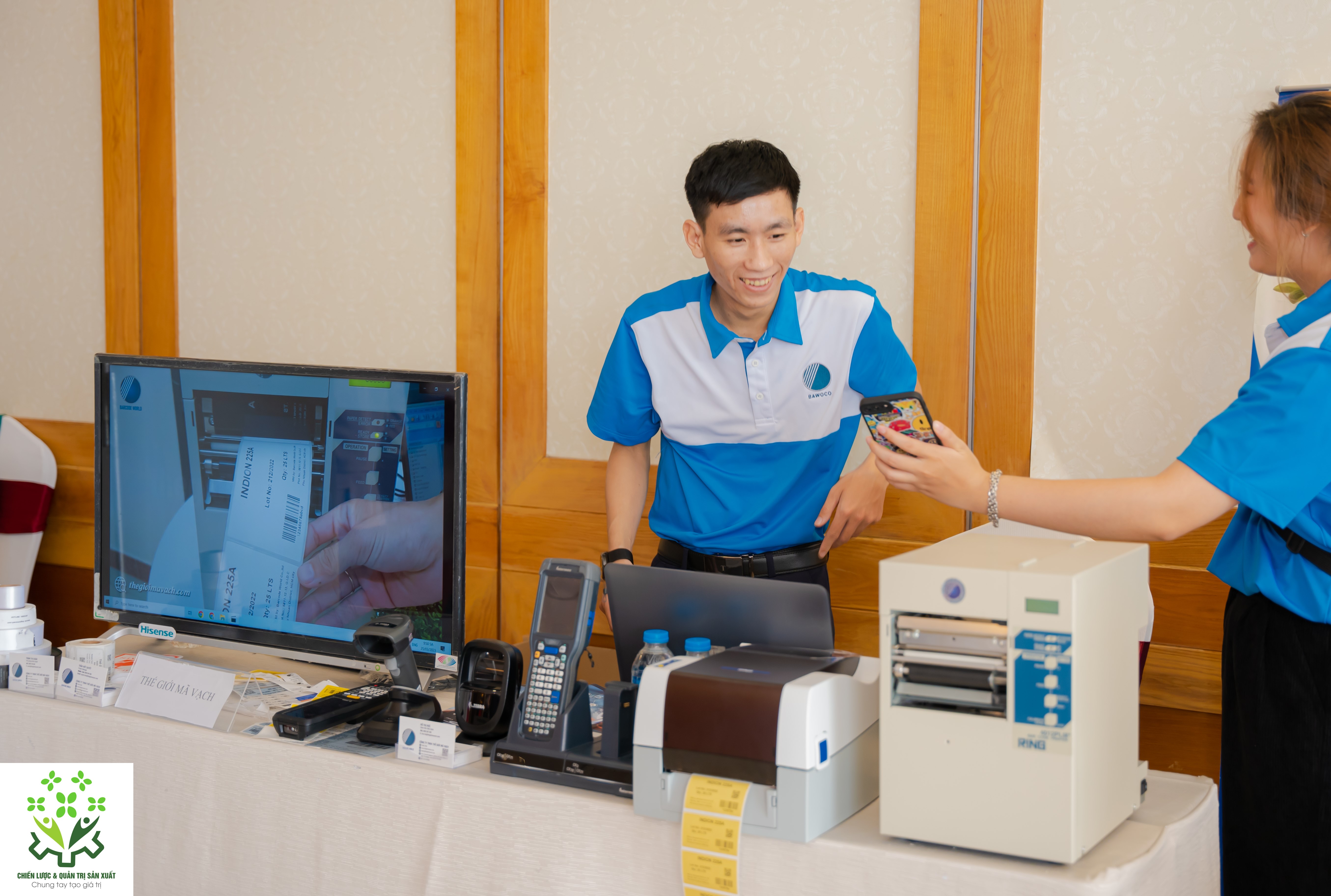 Giải pháp quản lý sản xuất: Phần mềm quản lý sản xuất (vật tư đầu vào, hàng tồn kho, hàng xuất ra, quy trình sản xuất, chấm công…), máy in tem mã vạch (in tem nhãn trên sản phẩm) và máy quét kiểm kho (PDA), giấy và mực in mã vạch, máy chấm công,…